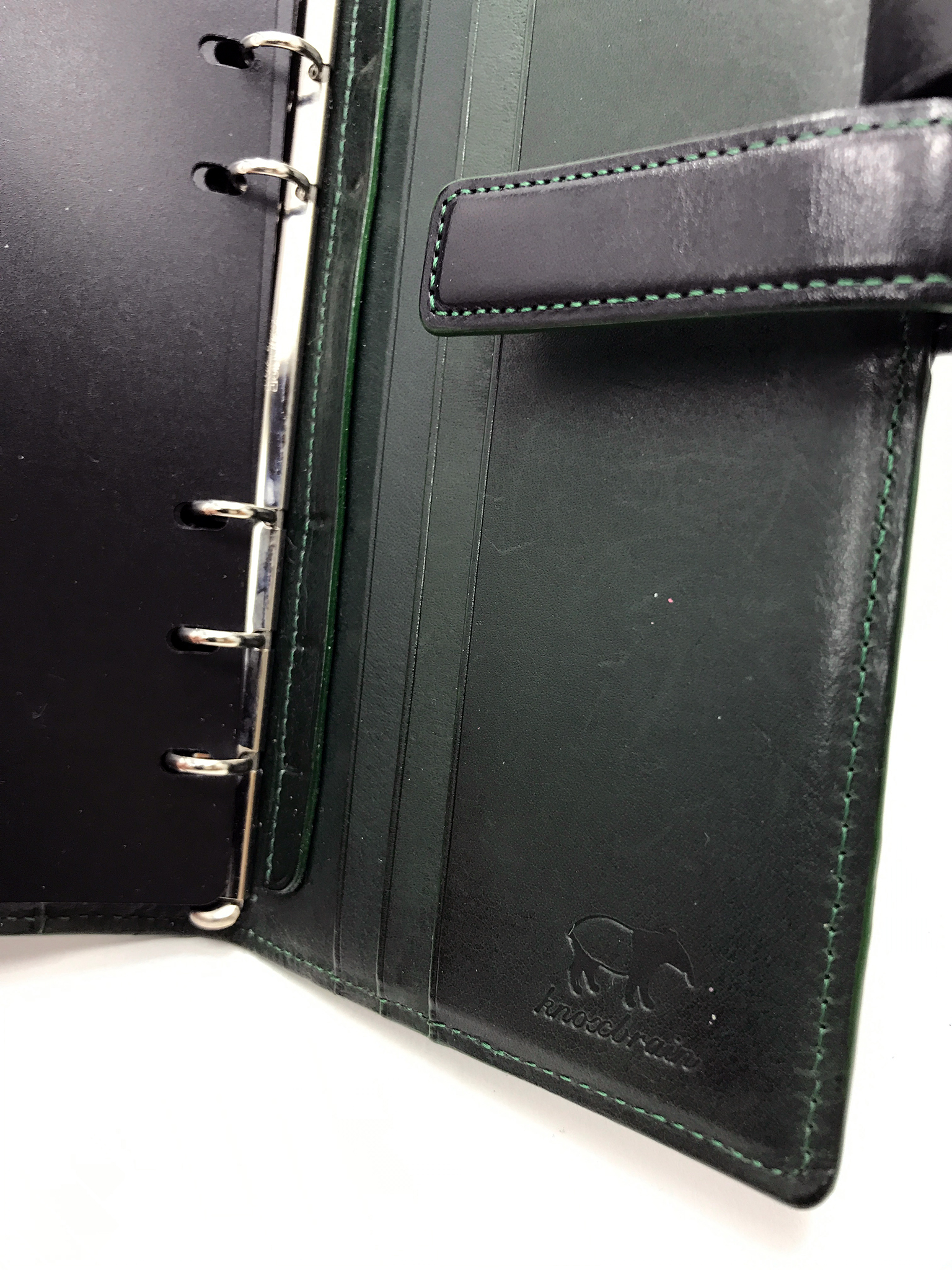 革製で未使用、かなりしっかりとしたA5判20穴バインダーです。これは充分、前線で戦える仕様ですね。