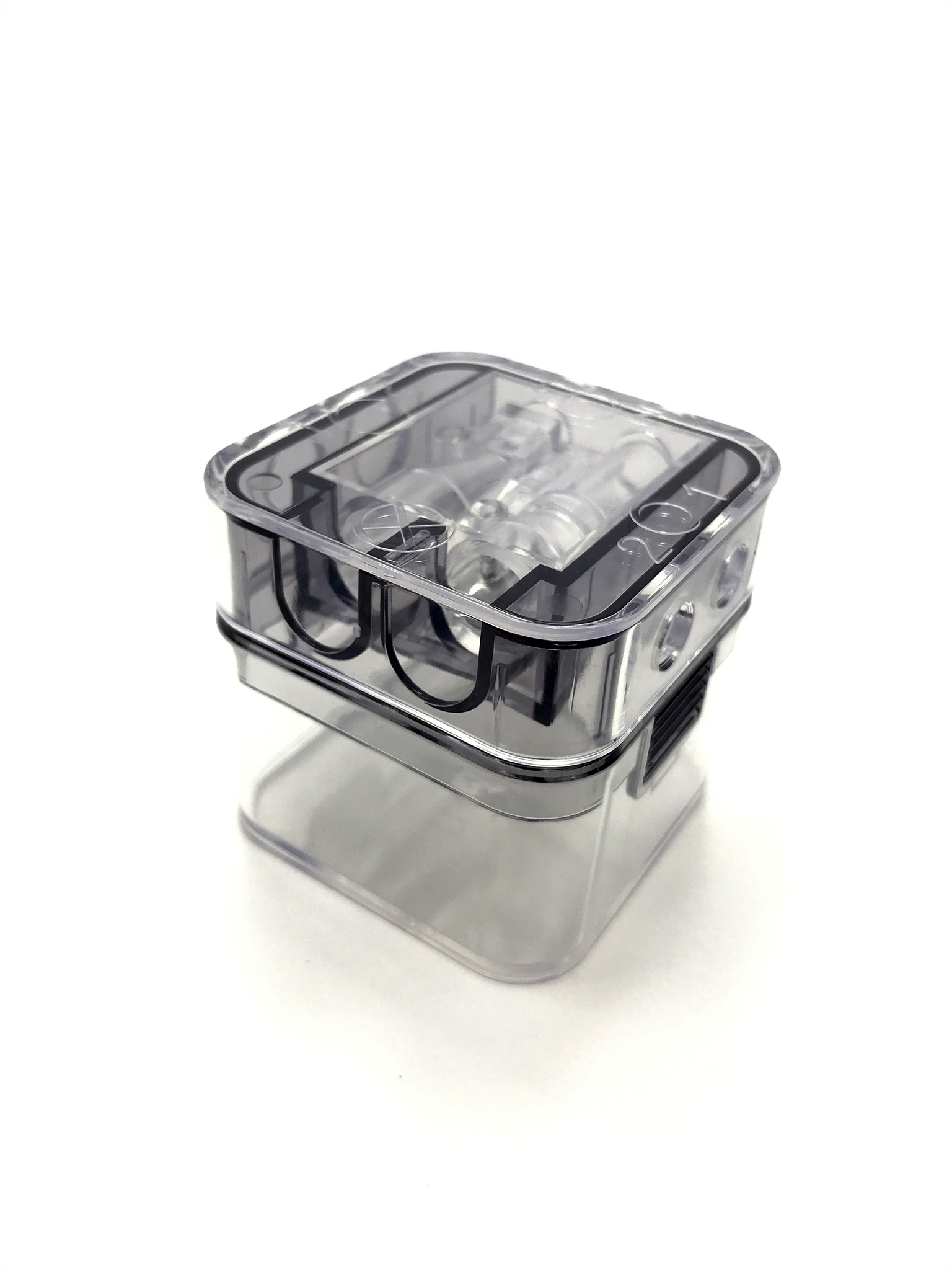 パッケージから取り出すと、何やらキューブ状の本体が出てきます。50ミリ四方、高さ48ミリってとこでしょうか。
