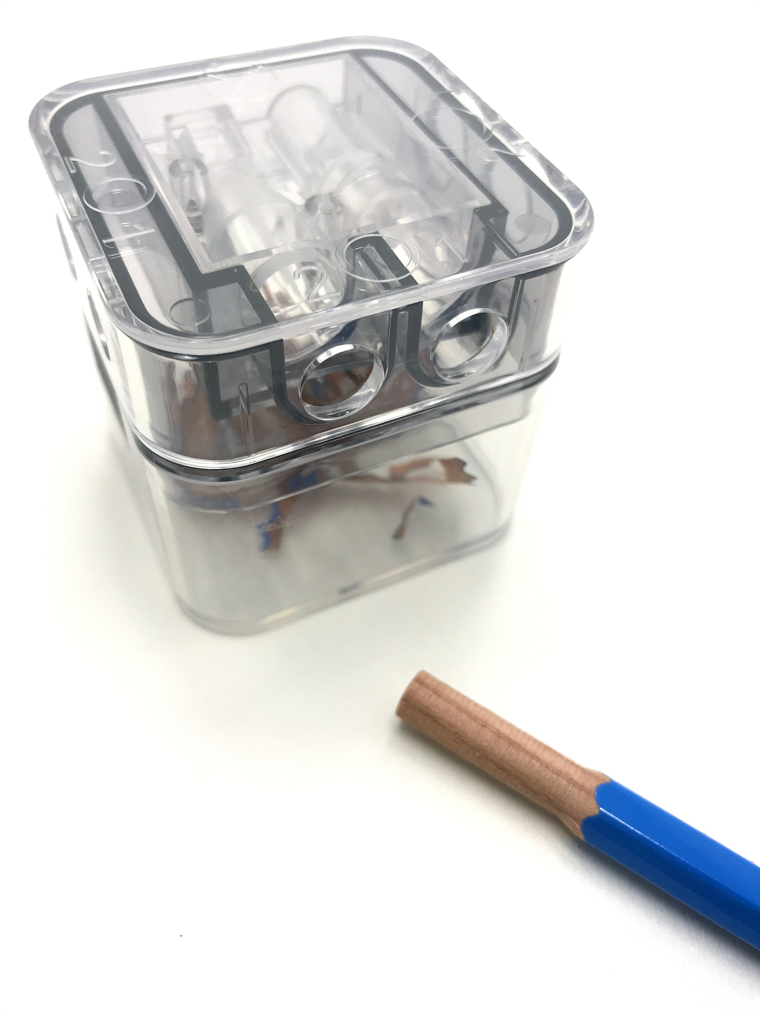 その後カール事務器からはこのときのノウハウを活かした「エクスシャープナー」という究極の色鉛筆専用鉛筆削り器(定価20,000円・税抜)が発売されました。2017年のことです。