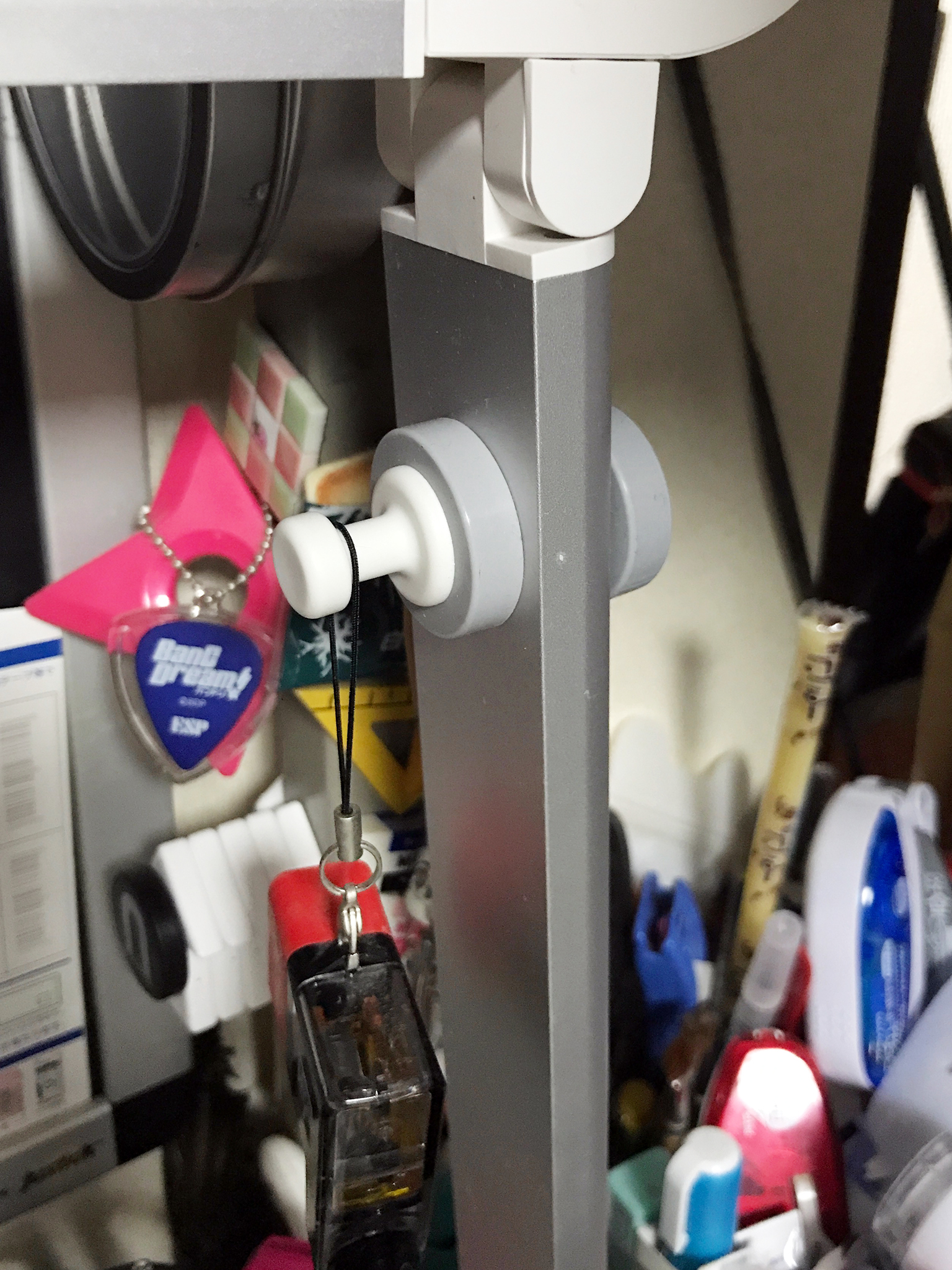 続いて、デスクライトの支柱にフックを増やしてみました。