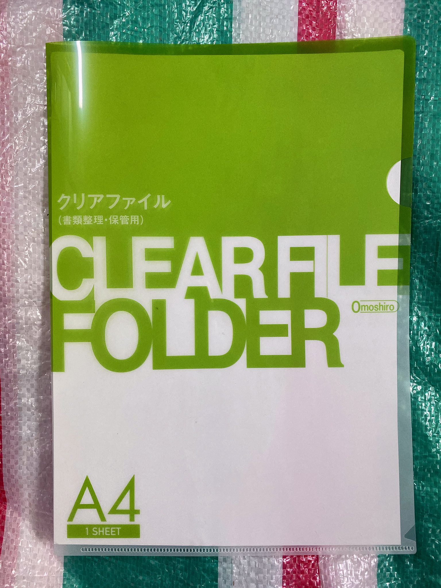 透明あるいは不透明で、様々な印刷がされている場合もありますが、概ね「左端と下端を溶着した樹脂製で、用紙を挟んで持ち歩くための文房具」。