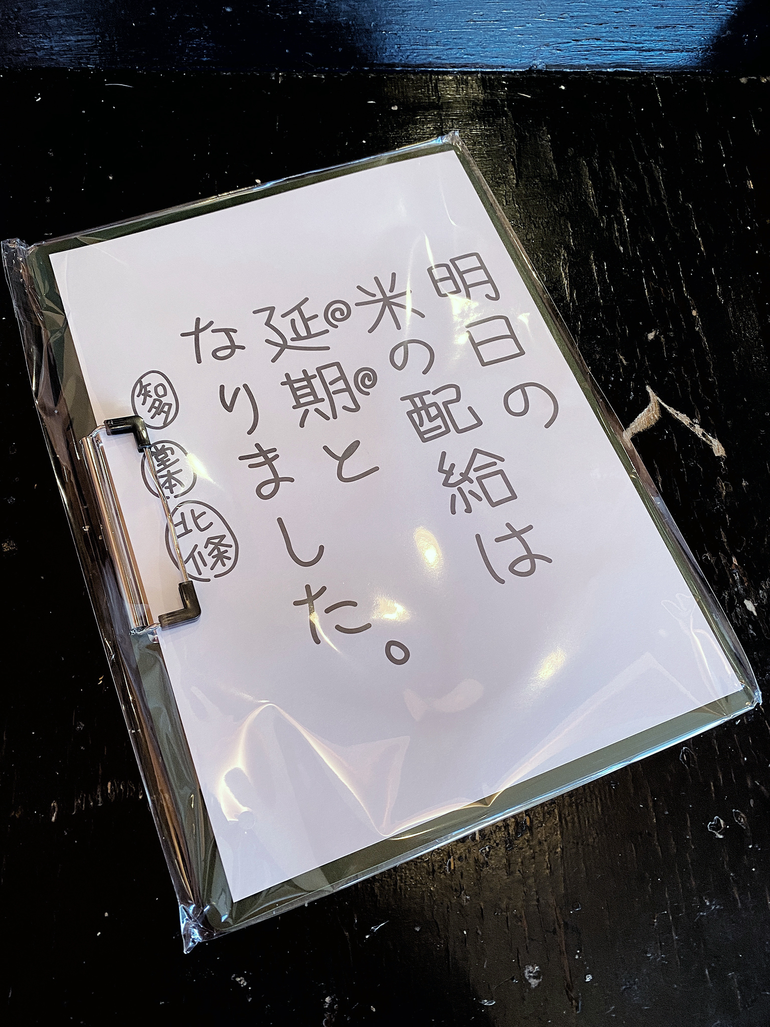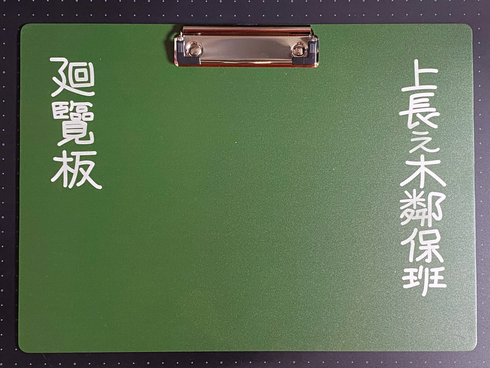 劇中で回覧板が出てくるのですが、それを模したクリップボードです。