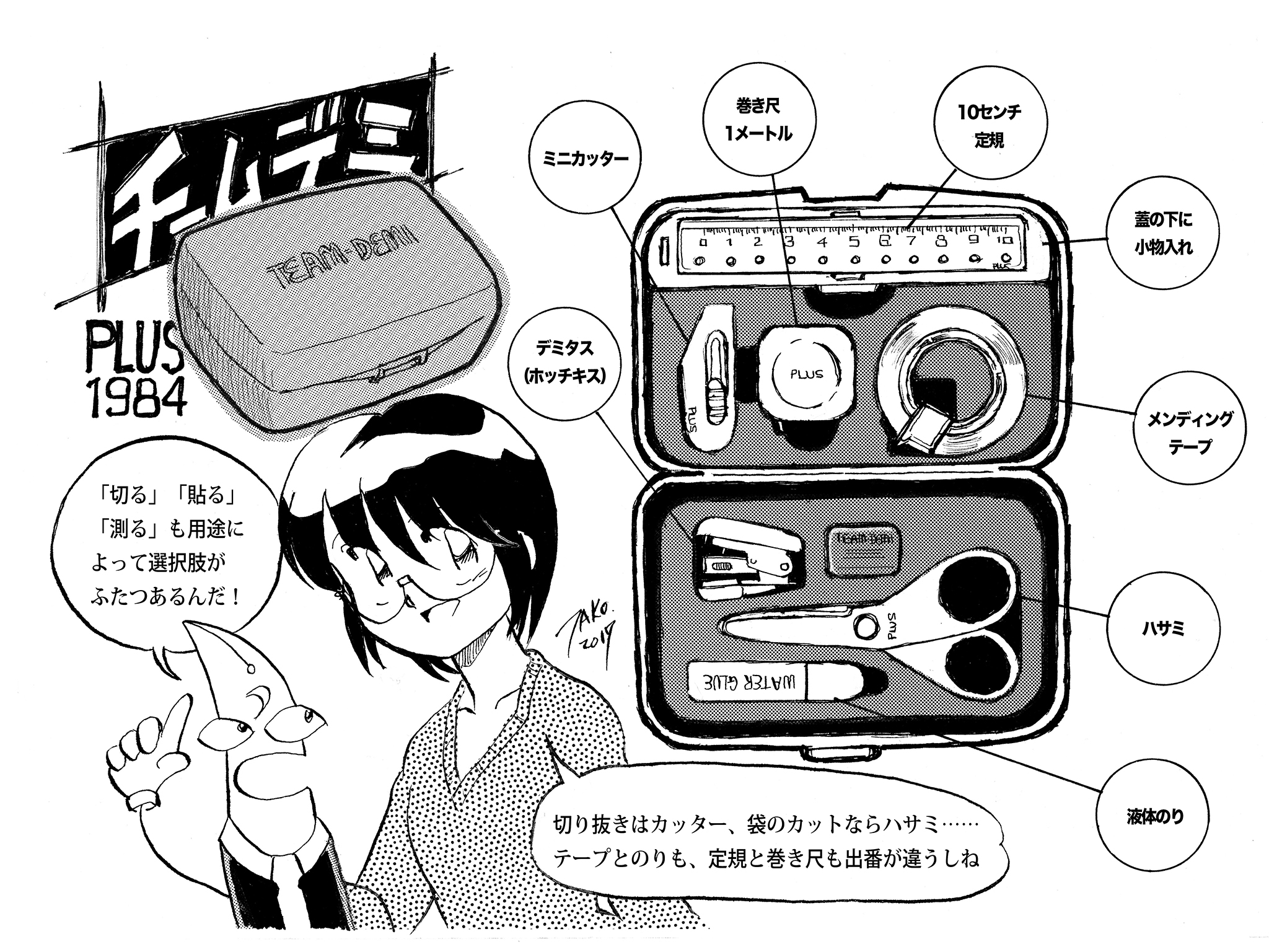 スポンジに填まり、整然と並ぶちいさくてかわいらしい文房具たち。しかしそのどれもが「実用品でござい」という顔をして、使ってくれ使ってくれとせがんでいる。