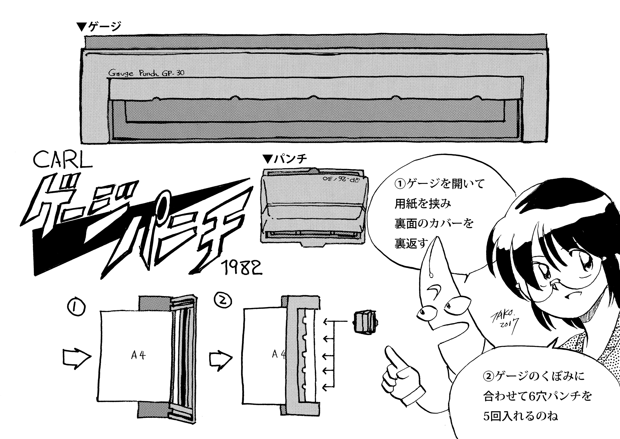 ルーズリーフは用紙サイズに関わらず穴の間隔(ピッチ)が同じなので、ひとつのゲージパンチで各種用紙に穿孔が可能だった。