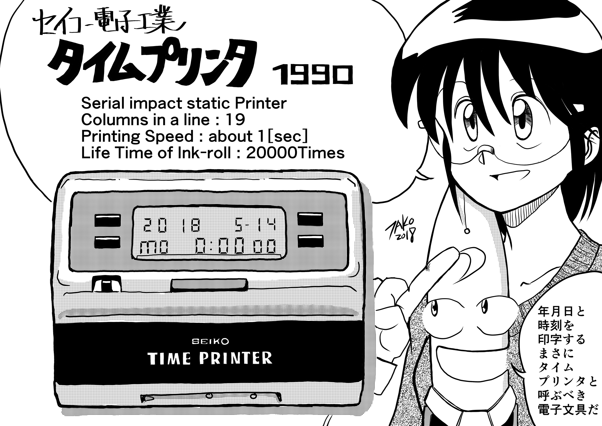 本製品は、LCDパネルに表示された時刻などの情報を、手軽に用紙に印字できる画期的な製品だった。