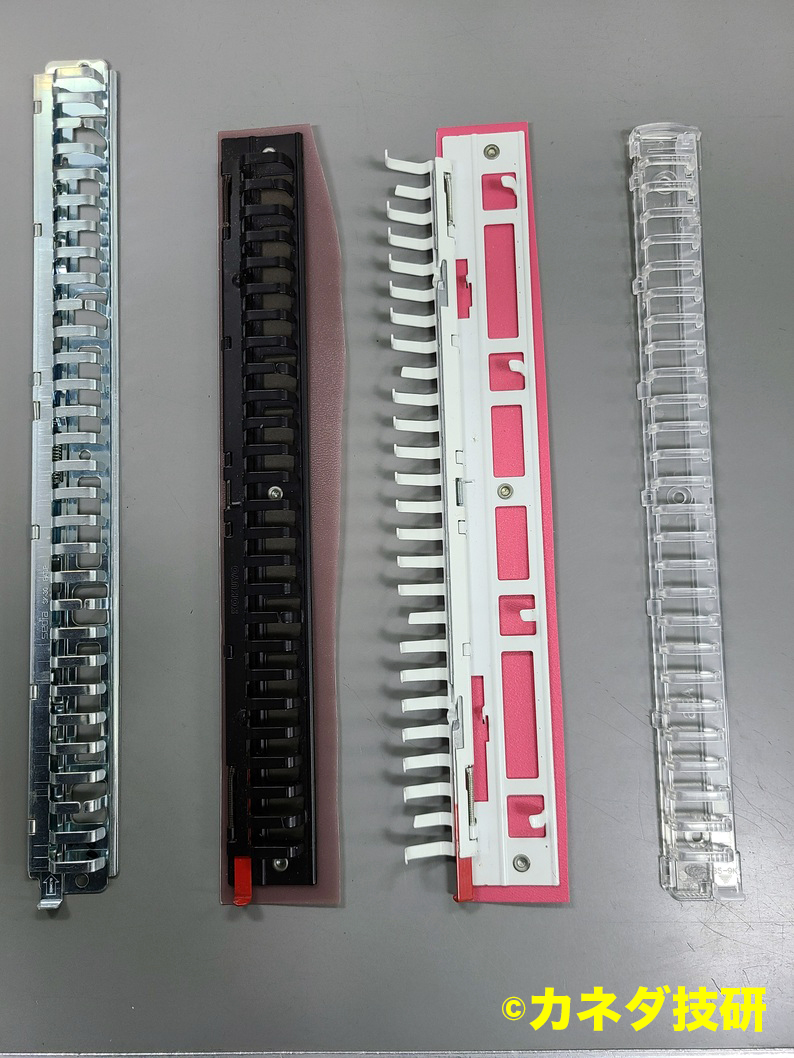 左はSEDIA(セキセイ)、中央ふたつがKOKUYO。右がカネダ技研のプラバインダー。