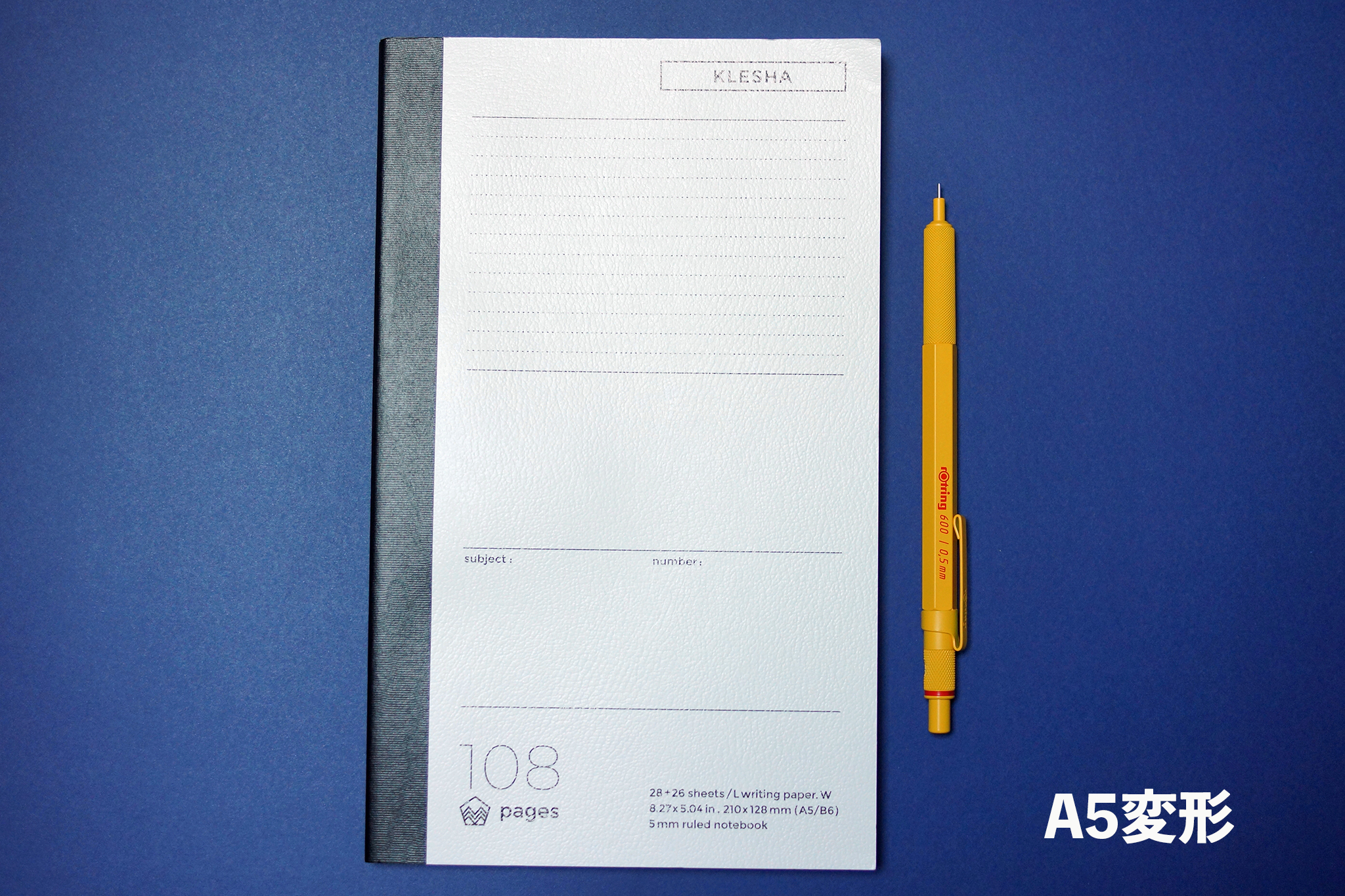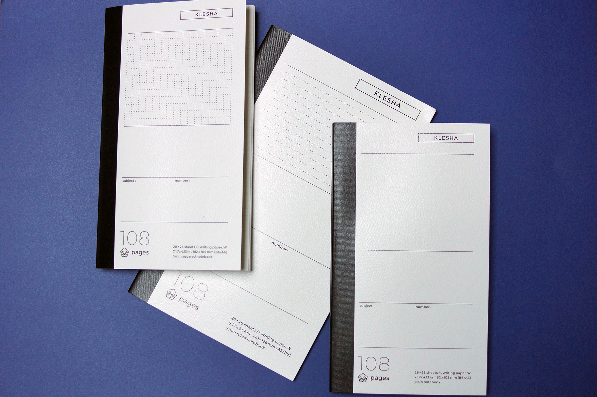 B6版というと、学習用ノートは今でもB5版が主流ですから、その半分ですね。縦182mm×横128mmですが、クレシャではこちらも横方向がスリムになっています。縦が182mm、横が105mmで、やはり幅が20mm狭いです。