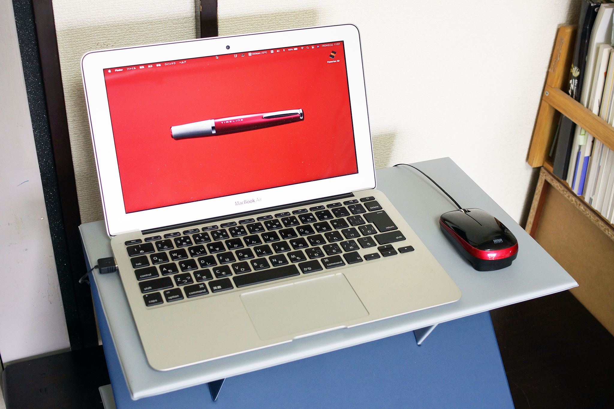 わたしの身長は168cmですが、自宅の机(高さ71cm)の机にパタスタを置いて、MacBookAirにてこの原稿を書いています。肘がやや曲がる程度でキーボードに打鍵していますが、成人男性にはパタスタはやや低いかもしれません。もう少し肘を直角に曲げたい場合は、パタスタ天面とノートパソコンの間に厚みがあってぐらつかないものを敷いて高さ調整をするほうがいいかもしれません。