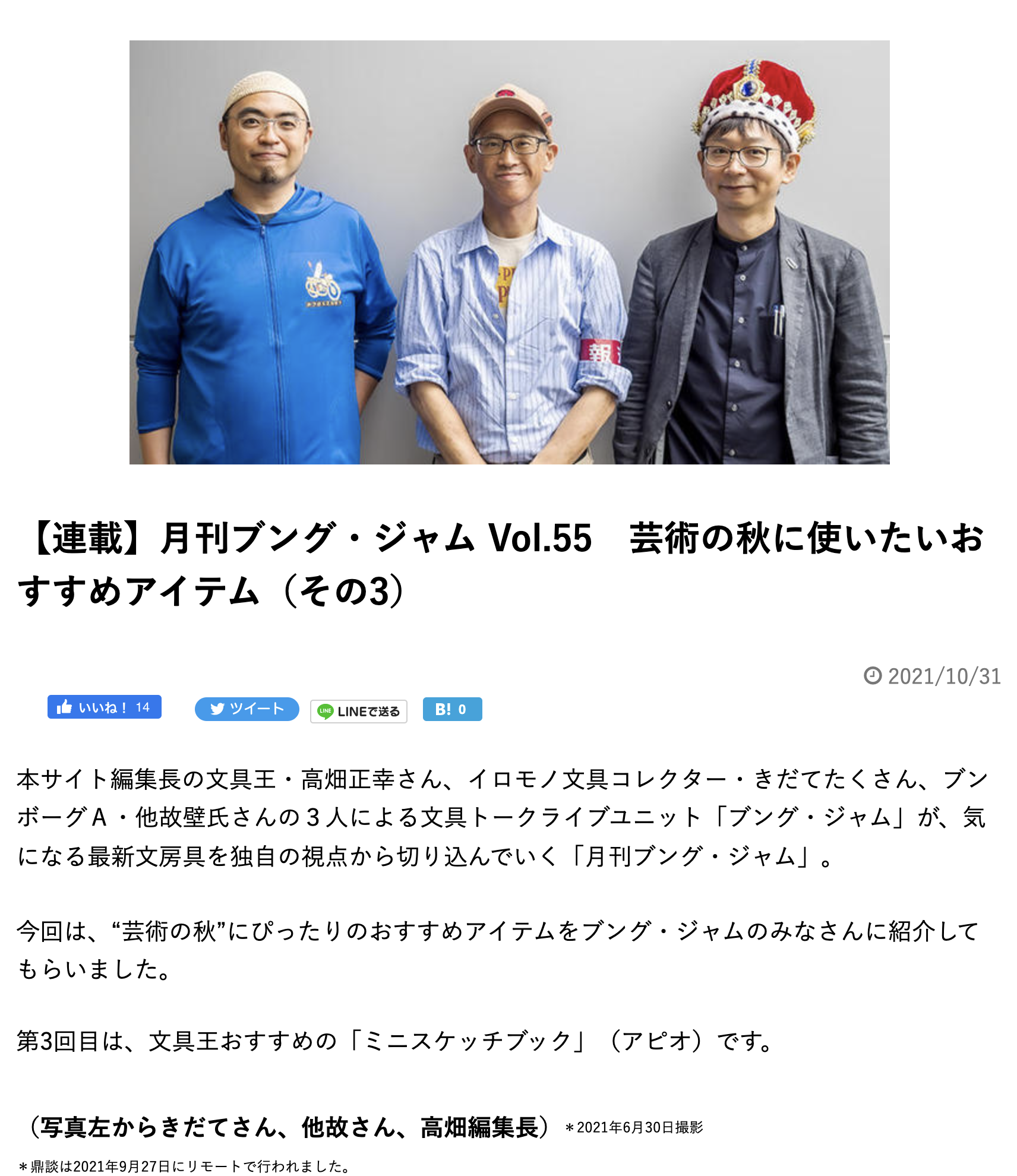 偶数月公開記事は、編集部よりお題が出て(今回は「芸術の秋に使いたいお薦め文房具)」)を各個人で持ち寄ってプレゼンするやり方。この場合、3名が何を持ち寄ったのかは、リモート会議が始まるまで判りません。