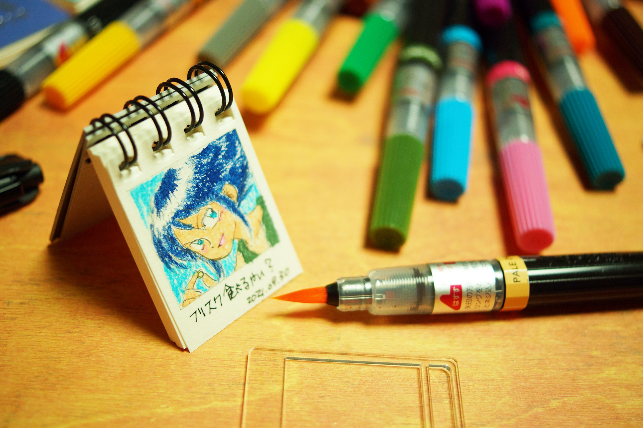 とにかく気楽に描くためのハードルが下がる、水彩で塗っても問題ない、持ち運びが楽でペンケースにも放り込んでおけると、三拍子揃ったユニークな存在です。
