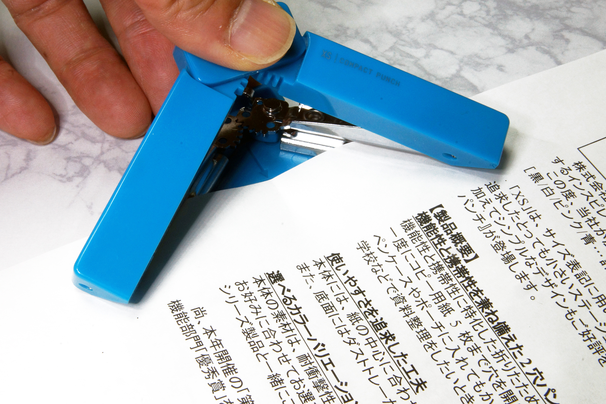 持ち運びに優れ、それでいて必要充分な機能を持つXSシリーズはどこでも使えて便利なのですが、今回のXSコンパクトパンチはその中でも異彩を放つギミックを装備しています。