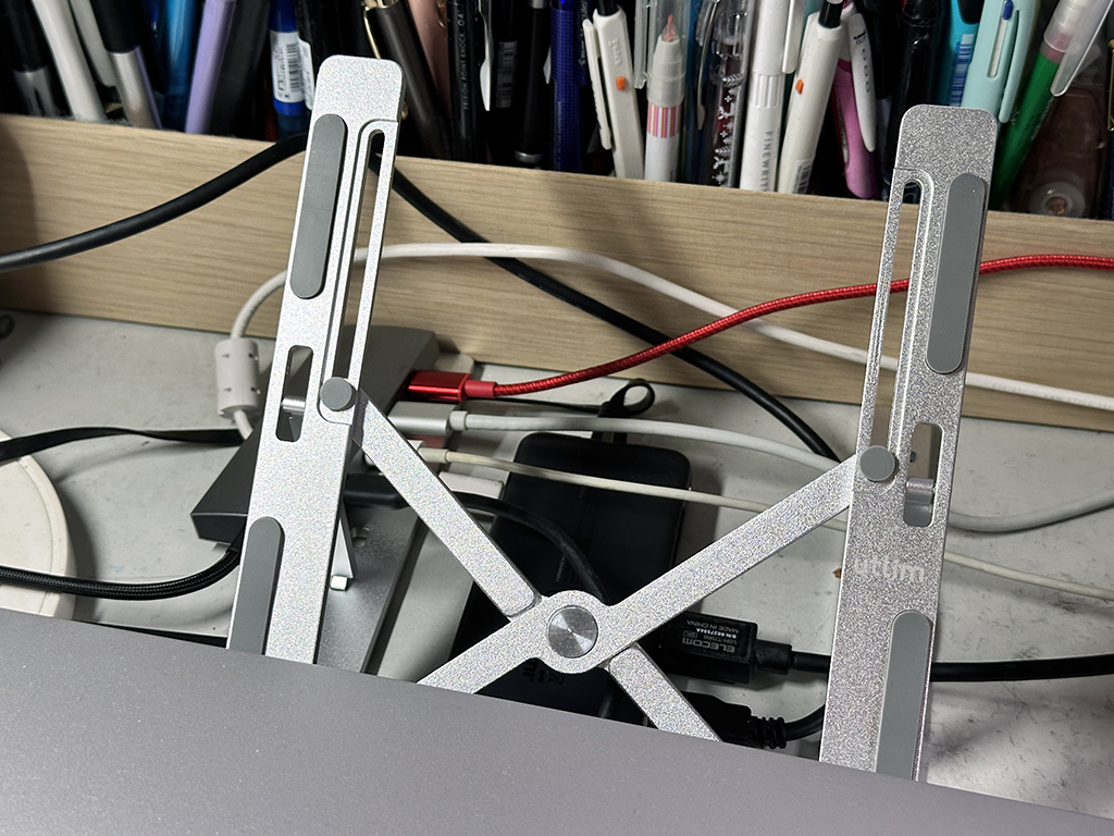 MBA M3を支えているのは、ソニックのブランドutrimの快適ノートPCスタンドです。