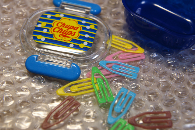 小説に詰まったら文具に逃げる まあ、いいじゃないですか。許してくださいよ。コンビニで買ってきた「チュッパチャプス文具コレクション」。ホッチキスか附箋が欲しかったのですが。残念!ケースでした。入っていたクリップもシオシオ。また買ってこようかな。どうしようかな。 [0回] コメント コメントを書く コメントを書く コメント送信