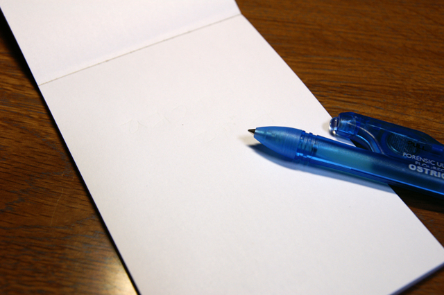 ペンに装備されたライトで書いた部分を照らしてみると。