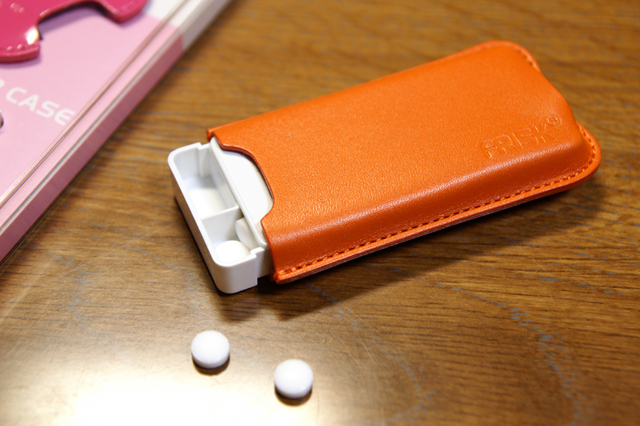 ソニプラ限定、革ケースつきフリスク。