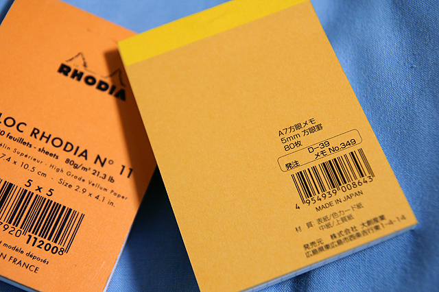 紙の厚さとカットオフ性能は本家ロディアのほうが上。万年筆での筆記に関しても、紙の厚みがあって滲みがない分ロディアのほうが有利です。