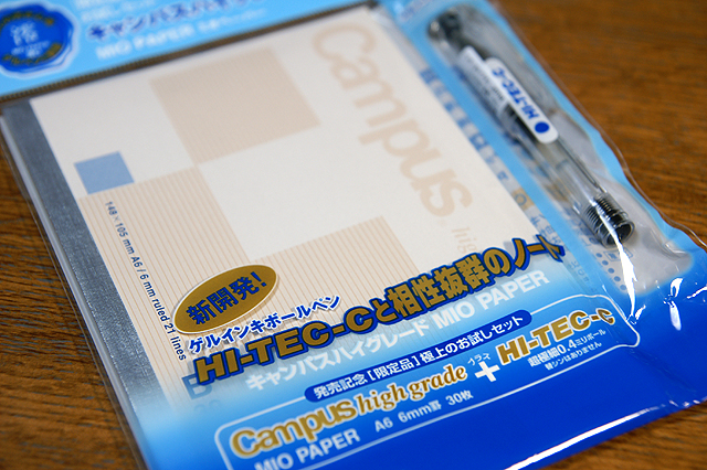 定価は210円(税込)。これって、ハイテックCプチモと同じ価格ですよ。キャンパスハイグレードA6 30枚が一冊おまけでついてくるこのセット(あれ?)、めっちゃお得です!