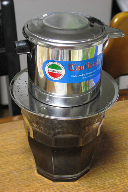 あと、ベトナムコーヒーのステンレスフィルターを使って、珈琲を淹れてみましたよ。