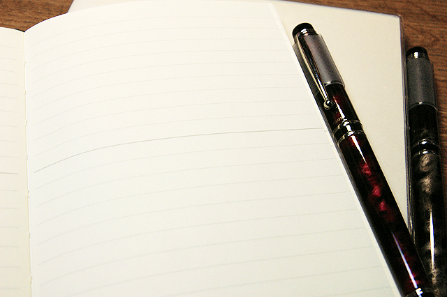ノート自体がある程度の厚さを持ち、ハードカバーで机がなくても安定し、リングではなく中とじで、そして万年筆の筆記性能が高い。この四点を合わせ持たないと合格点を上げることは叶わないのです。