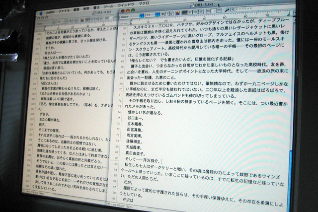 どうもネタバレの部分がどの章でも同じことを書いているような気がして、他の章の原稿や第一巻や第二巻を読み直してみたりもしています。