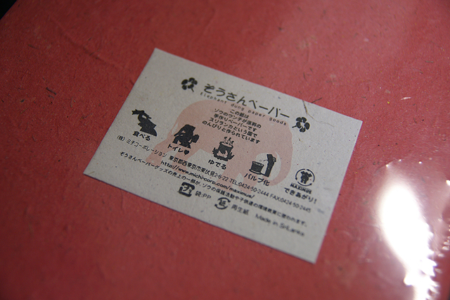 メイド・イン・スリランカの、ぞうのうんちをリサイクルした「ぞうさんペーパー」です。