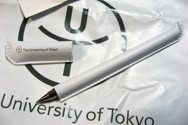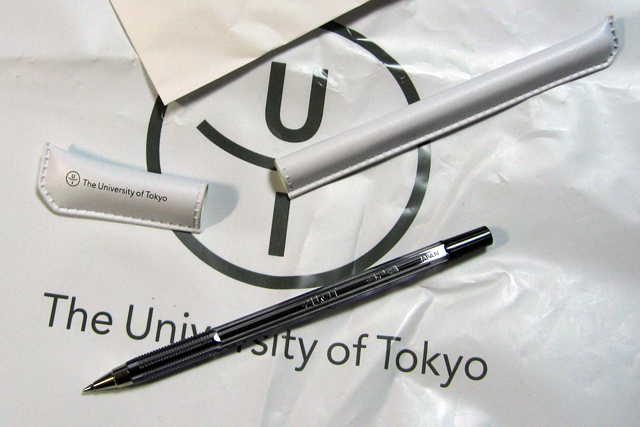 東京大学コミュニケーションセンターのロゴが入った「コミュニケーションツール」、商品名は「ペンカバー(ボールペンつき)」です。