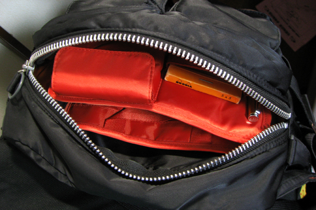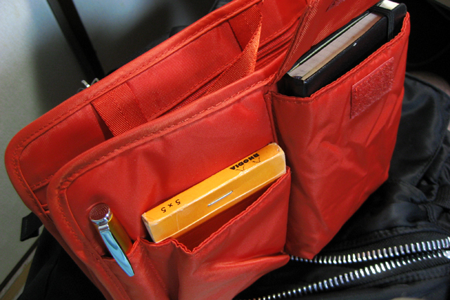 前面ポケットにはロディア11とモレスキンポケット、ペン差しにはタイムライン。