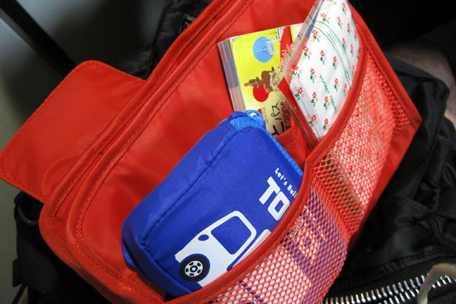 背面ポケットにはティッシュとエコバッグと「ぐるっとパス2008」を。