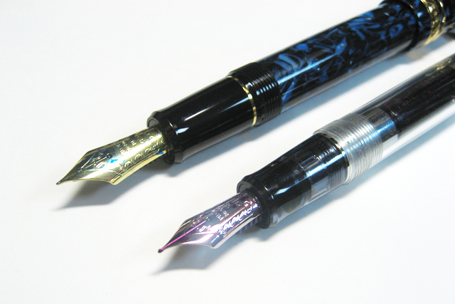 カスタムレガンス・10号ペン先とカスタム74・5号ペン先の比較。