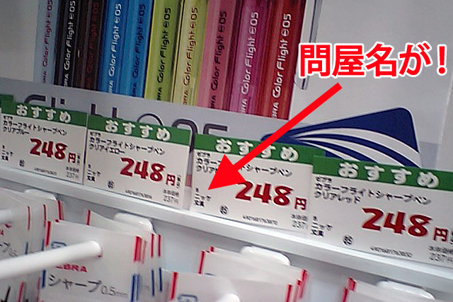 問屋晒し値札 近所のホームセンターというかスーパーというか何でも屋というか、そういう店にて。比較的珍しくないですか? 問屋名晒し値札って。そうか、ここはニッケン文具が文房具を納入しているのか……。 [0回] コメント コメントを書く コメントを書く コメント送信