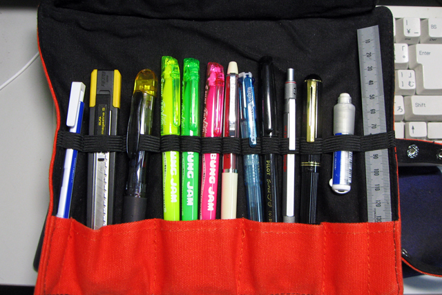 『筆箱採集帳』にも載せた、デルフォニックスのロールペンケースに愛用品を詰め込んでみたのですが。