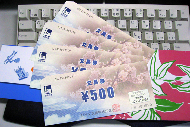 ここに文具券が4枚あります。