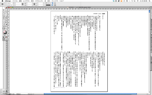 で、このままでは悔しくて終わらせることができないので、電車内でプリントアウトを校正できるように、InDesignで段組を行いました。