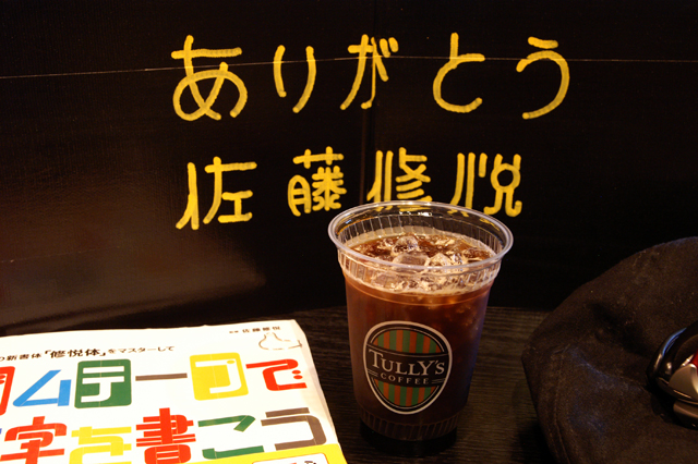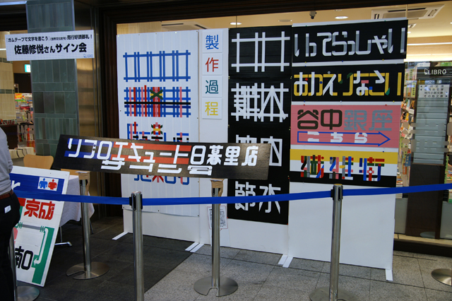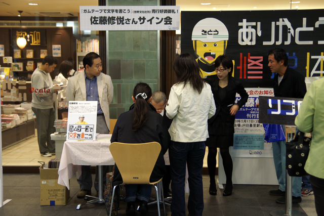 佐藤修悦さんサイン会 というわけで、日暮里駅でのサイン会は楽しゅうございました。修悦体がずらり並ぶ特設会場で。修悦さんのサイン会が。素敵すぎます。小生は列に並んだ四番目。握手、会話、サイン、記念撮影、プレゼント(!)と盛り沢山の会でした。いただいたプレゼントは「修悦体練習ボード」。貴重なダンボールです。ありがたし。サインの文字も「手書き修悦体」。本名ばっちりなのでいちおうモザイクですが、小生の名前もしっかり修悦体で書いてもらっています。ビバ! 修悦体!やっぱりすてきです! [3回] コメント コメントを書く コメントを書く コメント送信