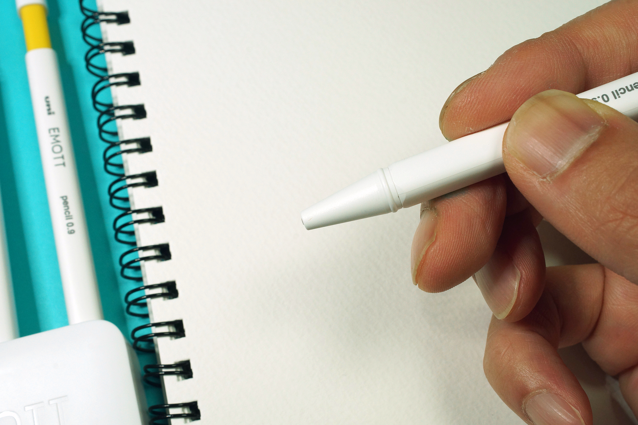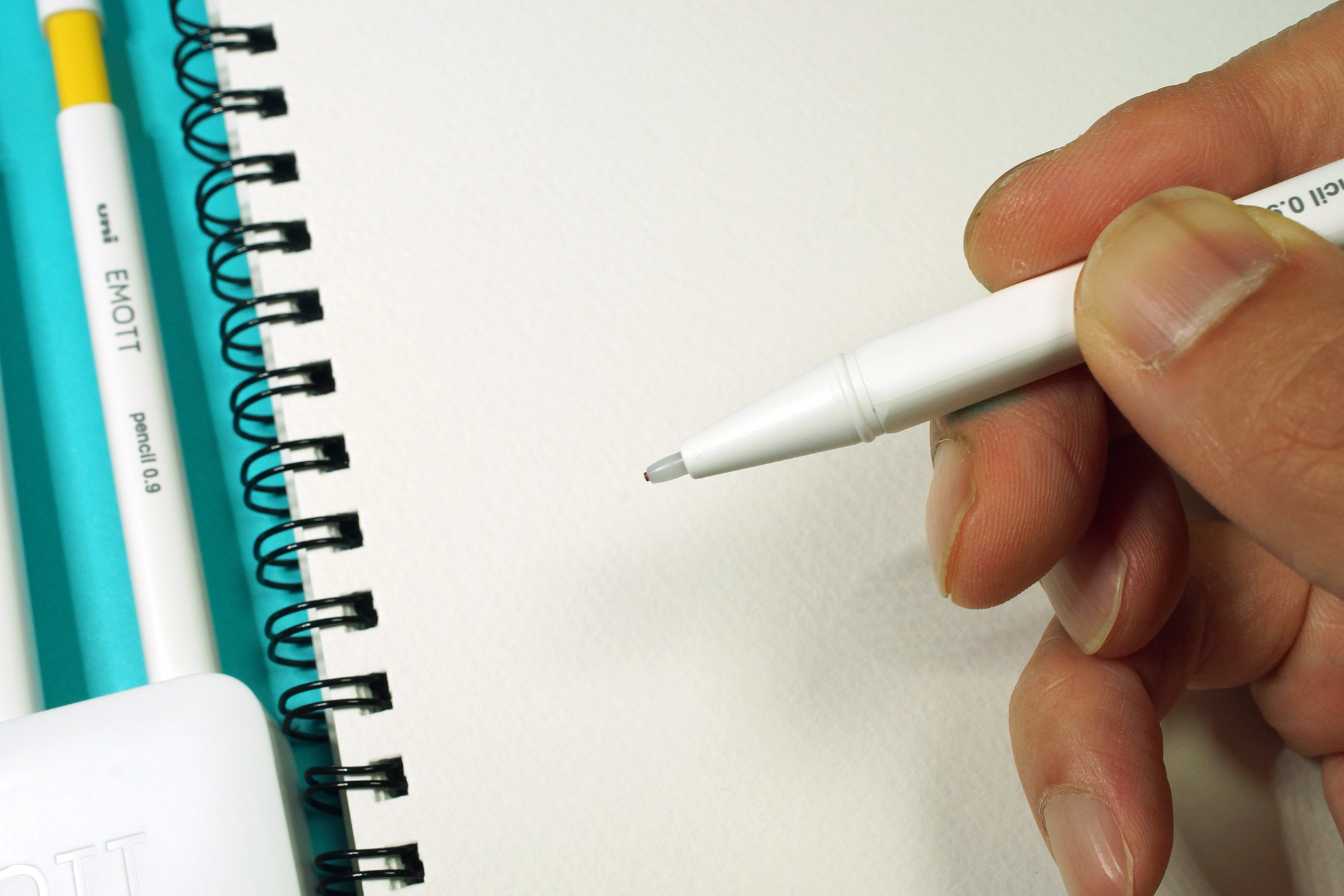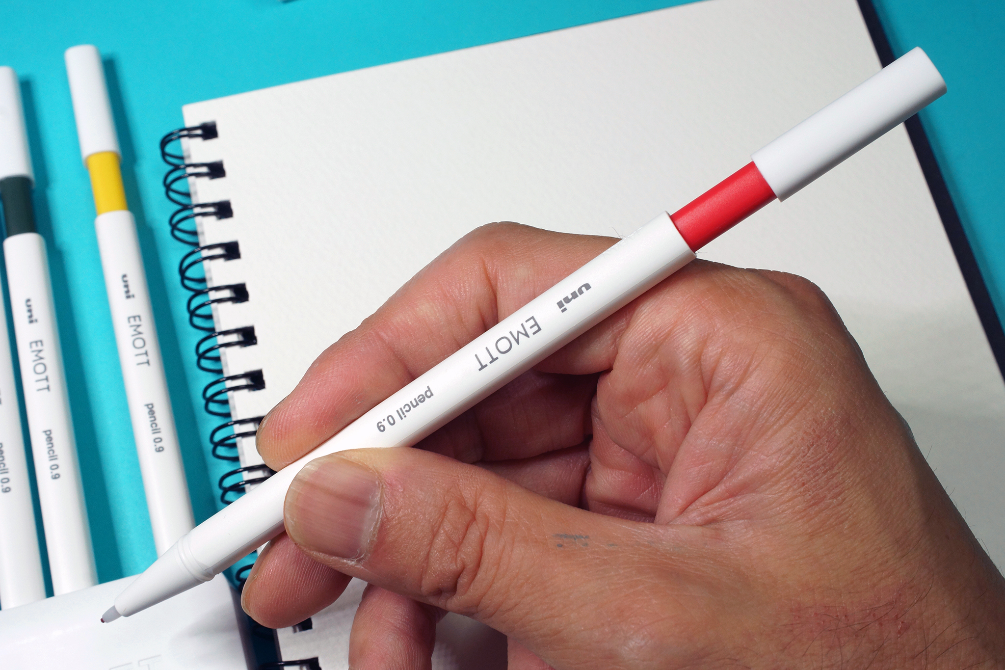 エモットペンシルは、形状で言えば「カラー芯の入ったシャープペンシル」です。0.9ミリの芯はもちろん字を書くこともできますが、それでもやはりこのペンの真骨頂は「色鉛筆として塗る」ことだろうと思うのです。