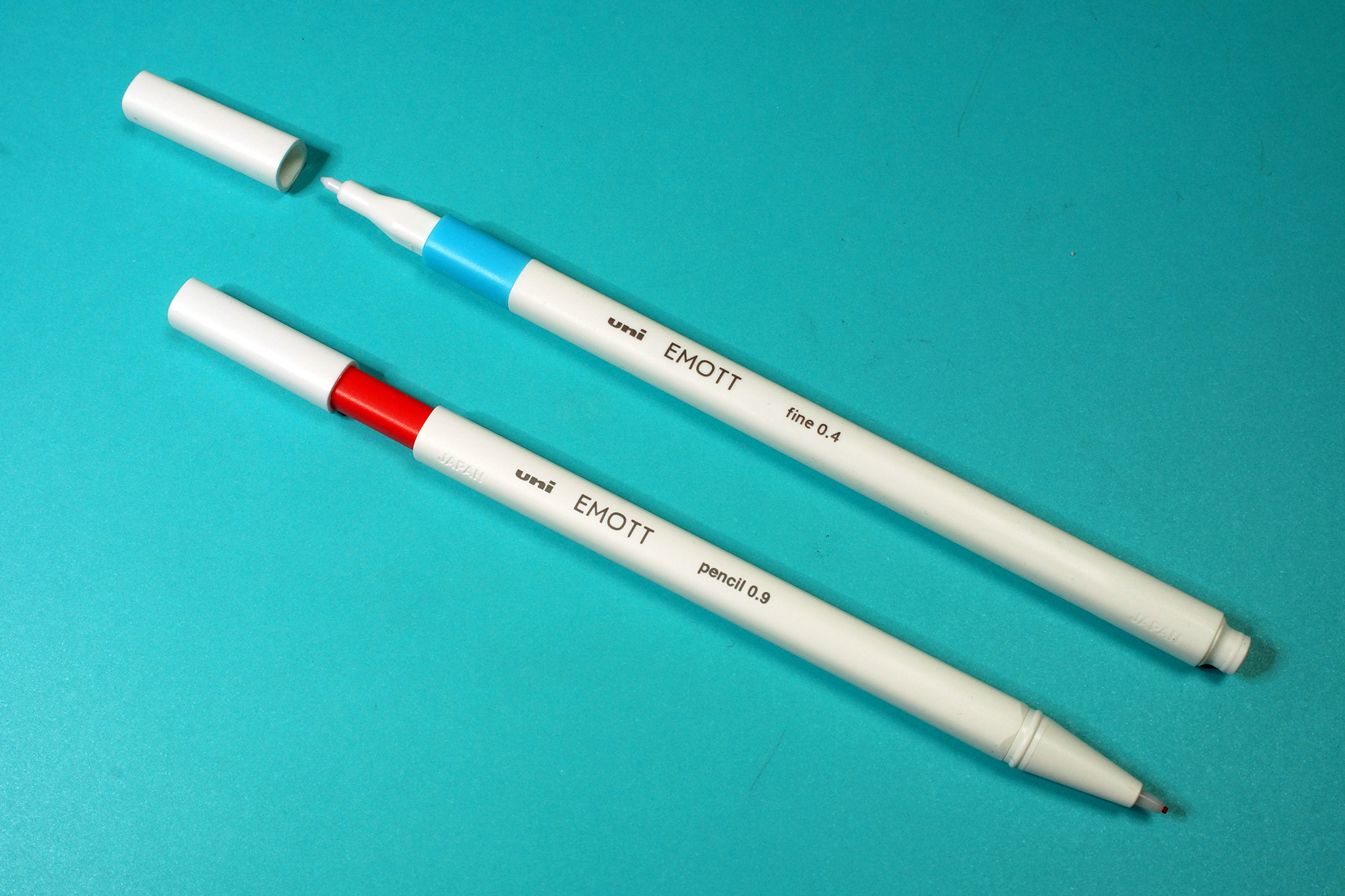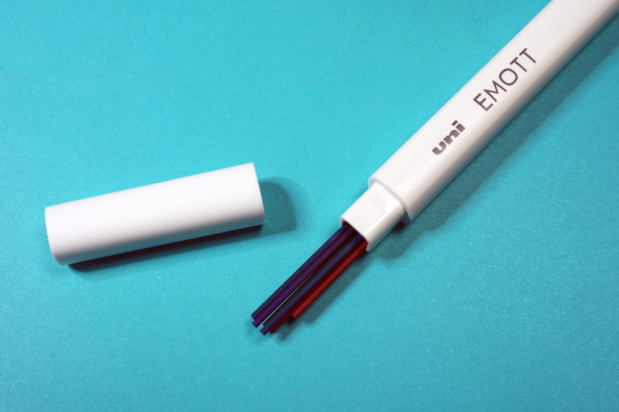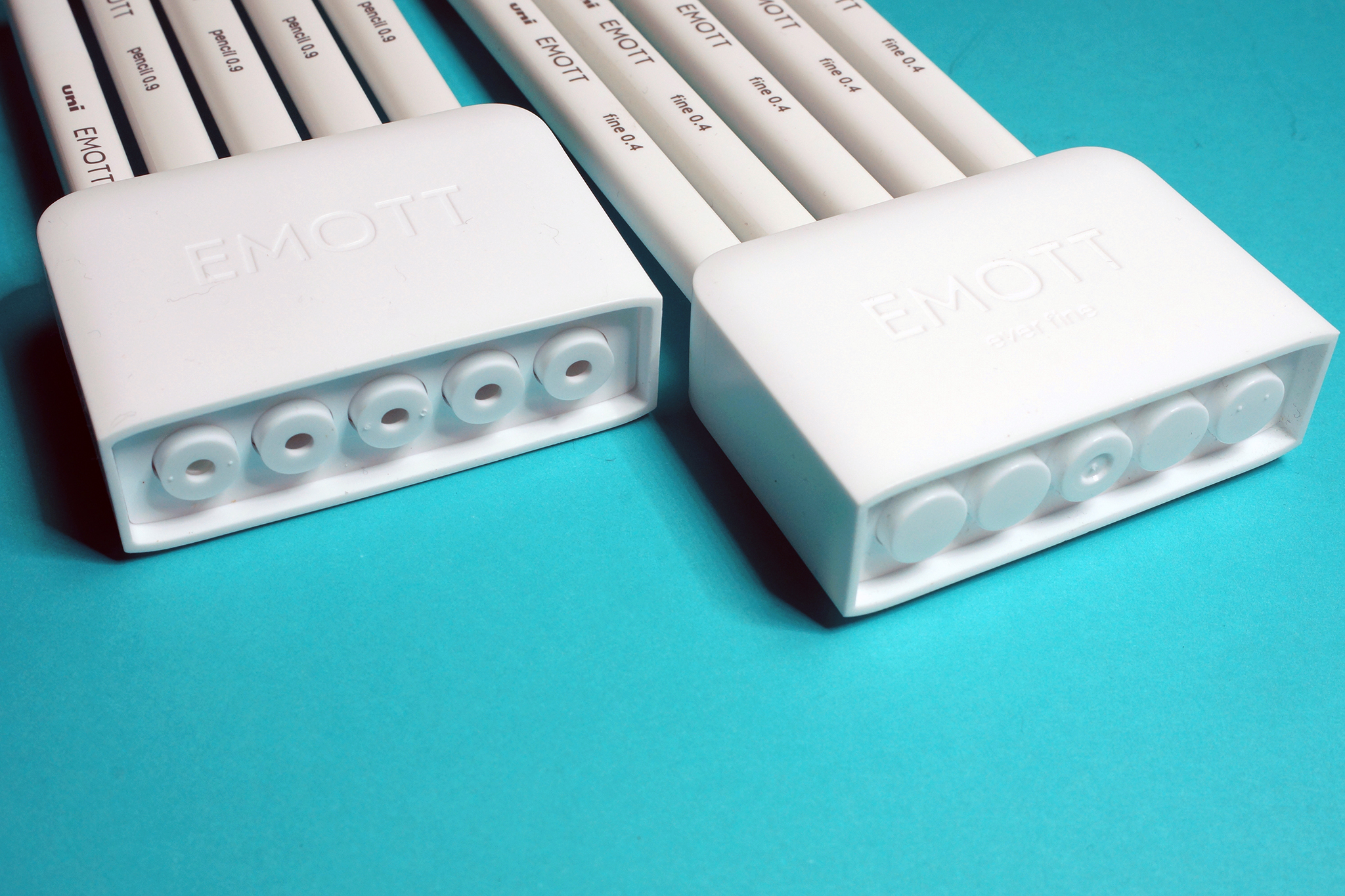 ・エモットは「EMOTT ever fine」と刻印されているが、エモットペンシルは「EMOTT」ロゴのみ。