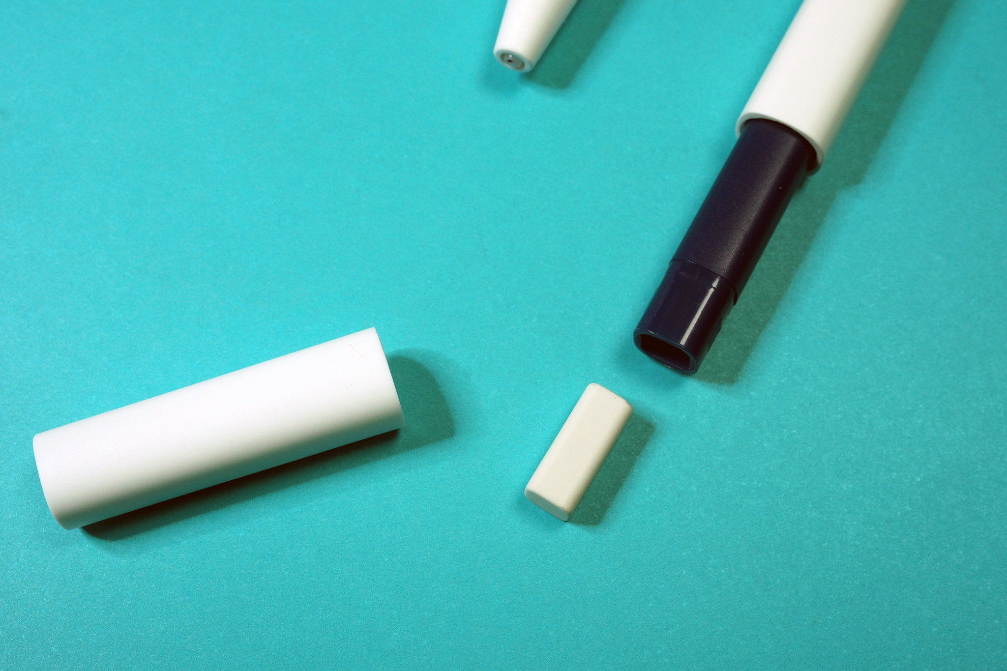 エモットはシャープペンシルですので、ノックキャップを外して芯を補充します。ちゃんと消しゴムも入っていて、それが四角いのがまたにくいですね。本体の四角に合わせているのは無論のこと、細かな修正を狙って角を出しているのだと思います。